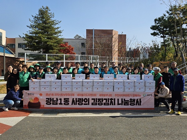 완성된 김치는 광남1동 지역사회보장협의체의 특화사업인 ‘사랑의 김장김치 나눔 사업’을 통해 지역 내 기초생활수급자 등 저소득·취약계층 가정에 전달됐다.