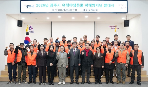 광주시는 지난 30일 시청 순암홀에서 ‘2026년도 광주시 유해야생동물 피해방지단’ 발대식을 개최했다.