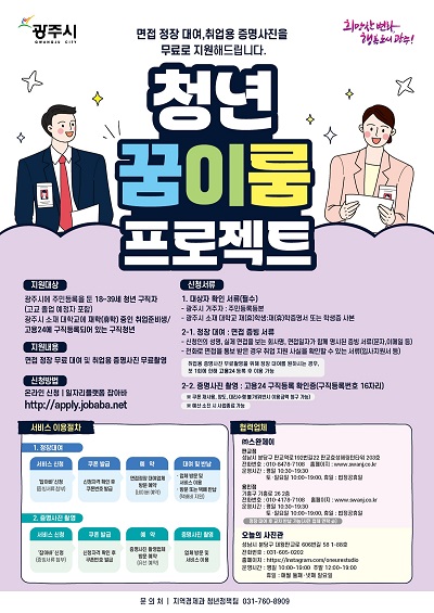 이번 사업은 광주시에 거주하거나 시 소재 대학에 재·휴학 중인 청년 구직자를 대상으로 하며 면접 정장 대여와 증명사진 촬영 비용을 전액 지원하는 것이 주요 내용이다.